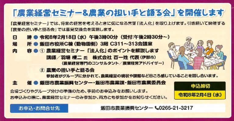 12月192025 お知らせ市田柿 【動画あり/参加者募集中】1月26日 『市田柿剪定作業講習会』『伝統行事 成り木責め』を開催します 「市田柿の剪定作業講習会」参加者募集!初めての方も大歓迎です  … 続きを読む